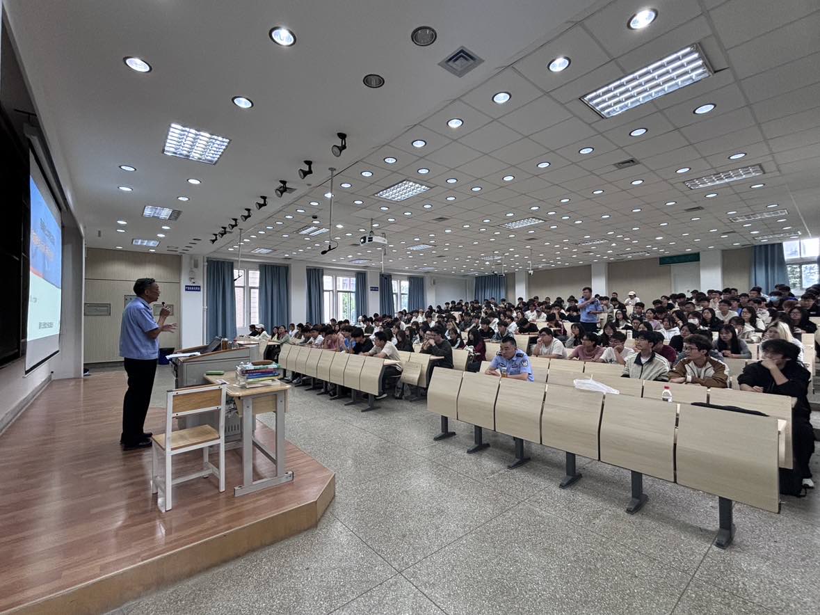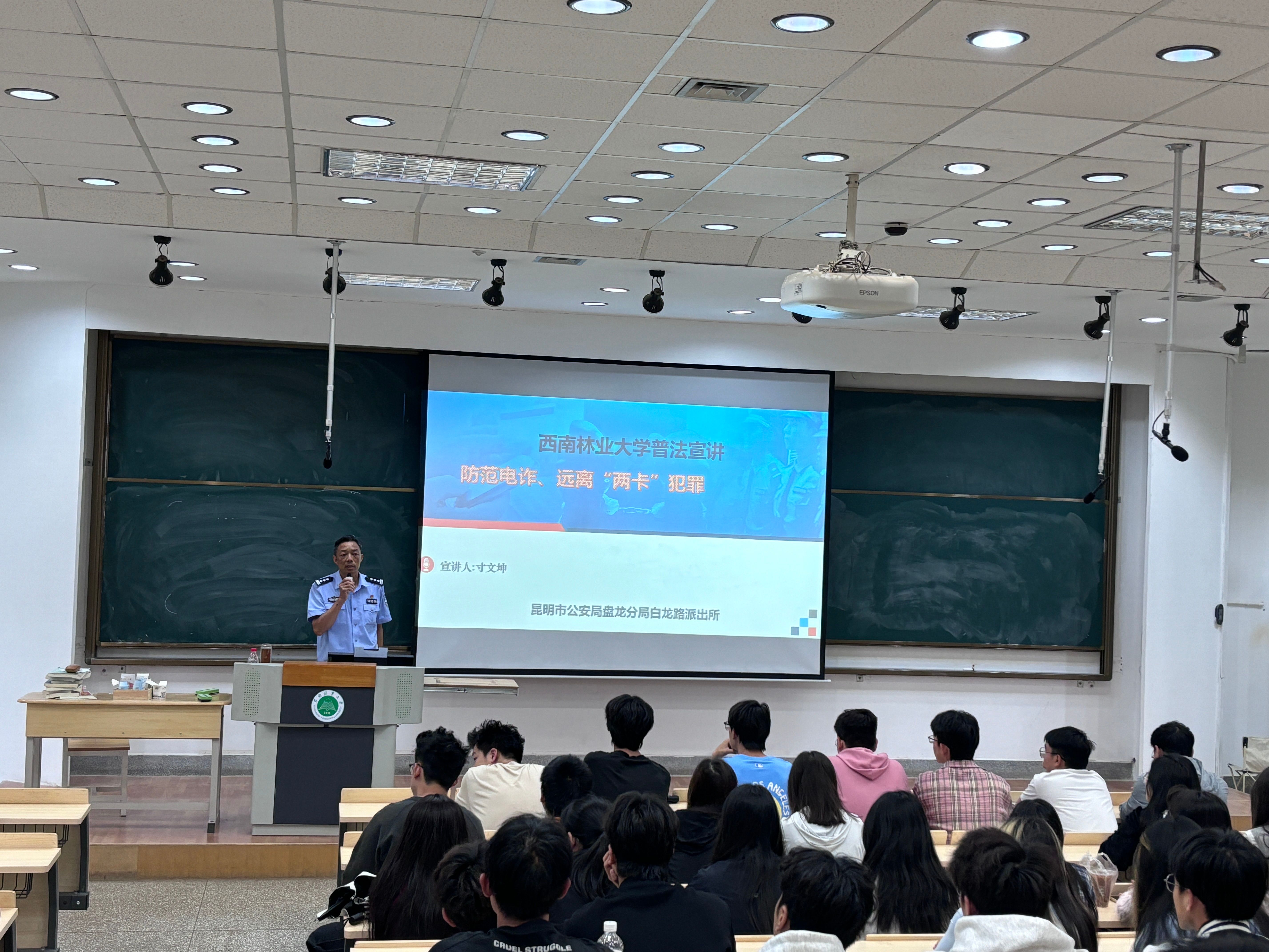 白龙派出所寸文坤警官围绕网络交友、刷单返利、网络贷款、冒充公检法、虚假购物等高校高发诈骗类型展开讲解。他结合辖区内老员工遭遇诈骗的真实案例,为同学们剖析诈骗分子实施诈骗的手段。为强化学习效果,讲座还设置互动问答环节,同学们参与热情高,现场气氛热烈。