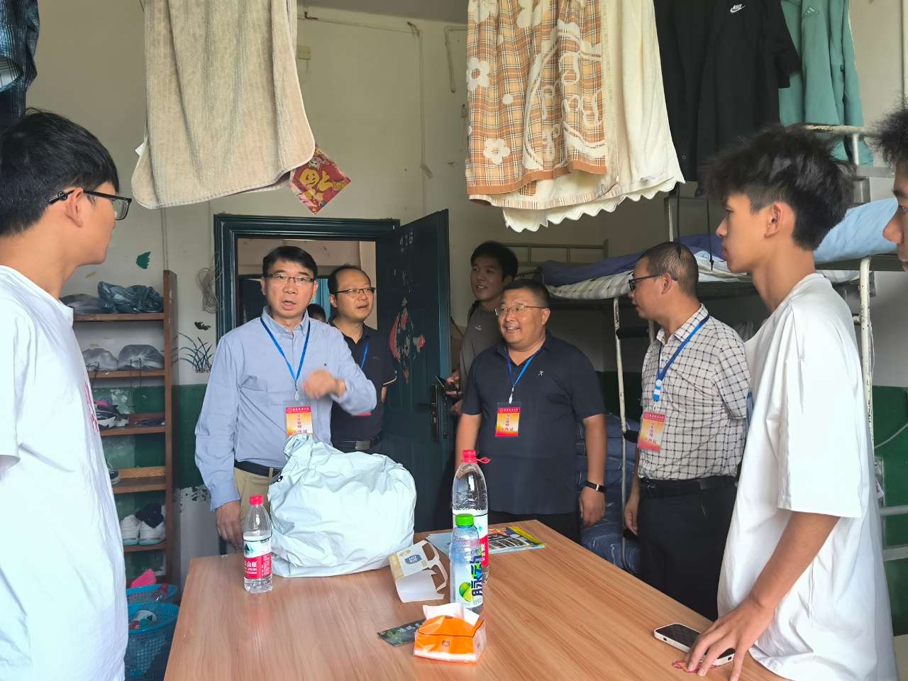为了帮助2024级新同学尽快适应校园生活,营造良好的生活环境和学习氛围,2024年8月27日,公司党委书记李勤文、经理梁志宏带队走访新生宿舍,副经理张晴晖、寇卫利,副书记李会朋,学院辅导员、班主任参与走访,进入宿舍了解新同学的校园适应情况,为新同学带来温暖。